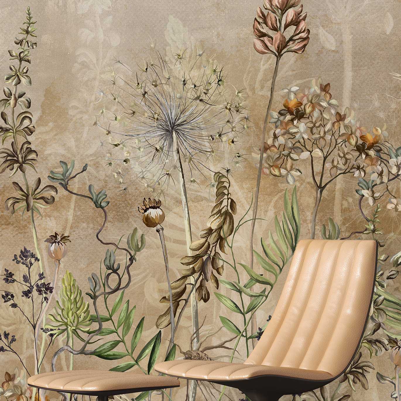 Verbessern Sie Ihr Zuhause mit dieser exquisiten Vintage-Tapete mit botanischem Design, inspiriert von Blumenillustrationen. Die zarten Muster verleihen jedem Raum eine elegante Note. Ideal für eine zeitlose Ästhetik. Schlagworte: Tapete, Vintage, botanisch.